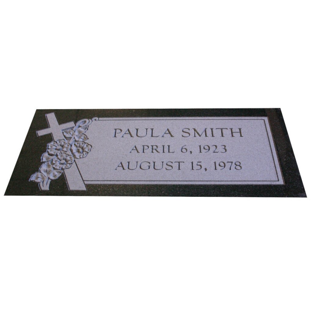 The polished finish enhances the contrast of the lettering and artwork, offering both clarity and elegance. Ideal for cemeteries requiring flat markers, this design delivers a timeless tribute in a compact and respectful form.